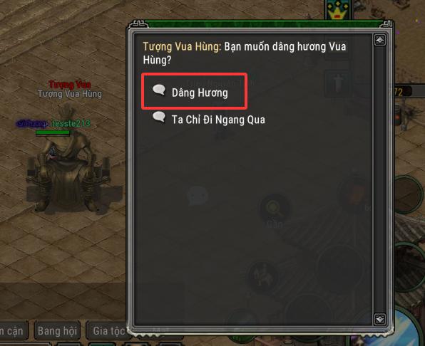 - Người chơi có thể đến tượng vua hùng tại Phượng Tường để Dâng Hương