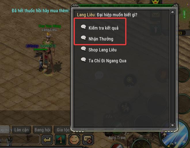- Nếu số may mắn của bạn trùng với số may mắn của NPC bạn có thể nhận được 1000 đồng thường tại NPC Lang Liêu